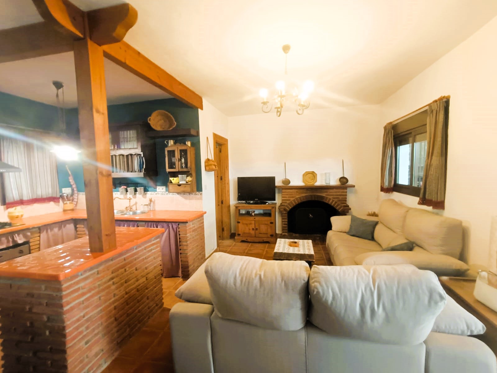 En la planta baja tenemos un amplio salón con la cocina americana, todo diáfano y acojedor, coronado por la preciosa chimenea de leña que dotará la casa de calor todo el invierno, y un cuarto de baño con ducha super coqueto.