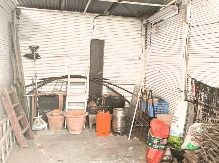 Nada más entrar por el portón principal nos encontramos de frente un amplio almacén de 23m2, también usado como garaje, con posibilidad para convertirlo incluso en un taller.